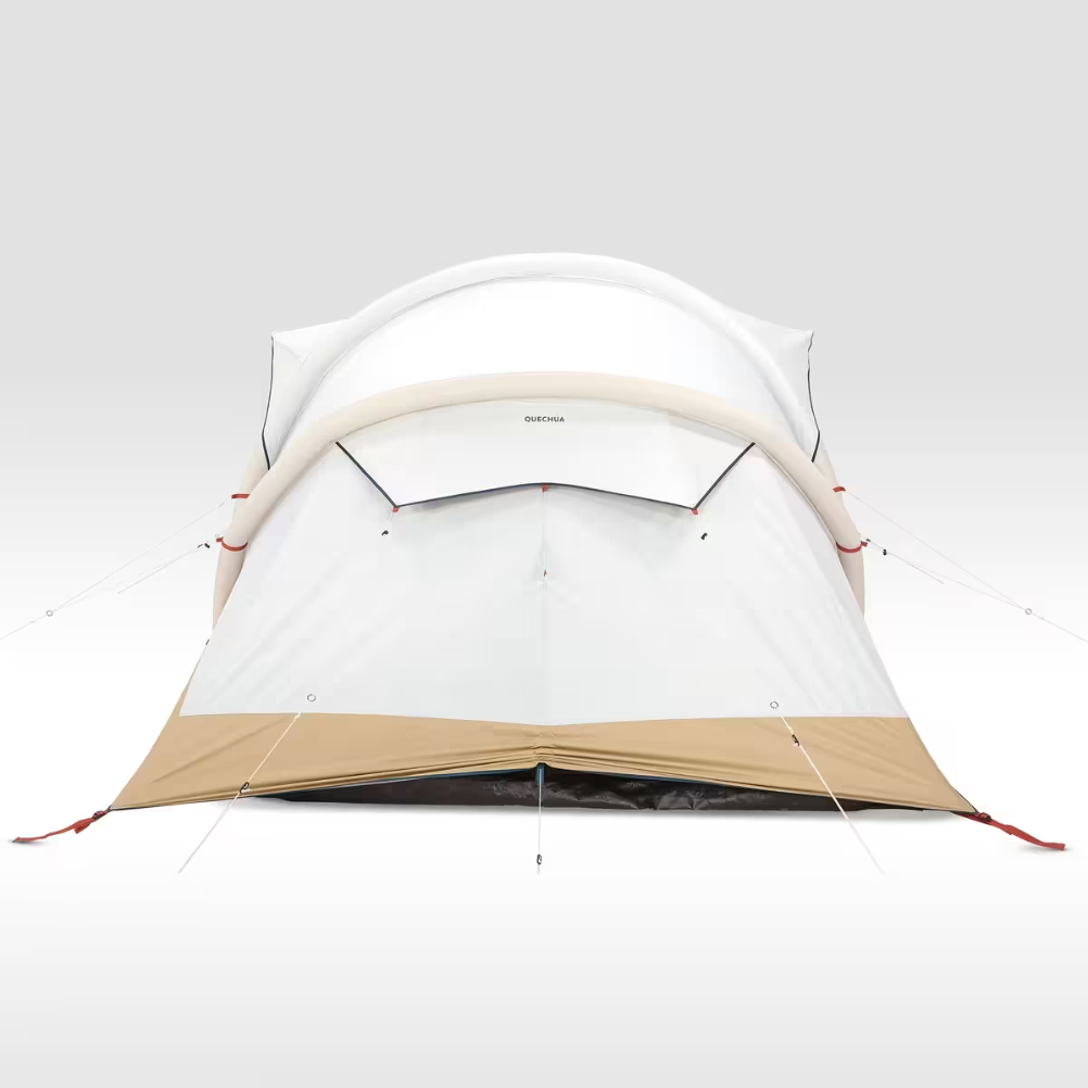 La Tienda de campaña 4 Personas Airseconds 4.2 F&B Quechua es un modelo inflable con capacidad declarada de 4 personas y distribución de 2 habitaciones. La estructura integra doble techo y dormitorios premontados sobre una arquitectura con arcos inflables. El espacio de estancia tiene una superficie aproximada de 5,9 m² y una altura máxima de 1,95 m. Cada habitación mide 140 x 210 cm. El tejido del doble techo incorpora tecnología Fresh & Black y tratamiento UPF 50+. La ventilación se realiza mediante aberturas y paneles con mosquitera. El suelo del espacio de estancia es de tipo cubeta y puede elevarse en la zona de acceso. La impermeabilidad se comprueba mediante ensayo de lluvia de 200 litros de agua por hora y por m², y el doble techo cuenta con una columna de agua de 2000 mm. El modelo también se somete a ensayo en túnel de viento sobre plataforma giratoria a 60 km/h. El conjunto incluye piquetas y bolsa de transporte.